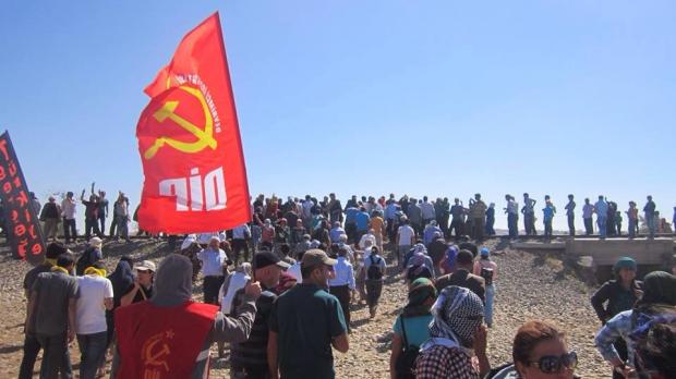 Il 25 e 26 settembre 2014, dei rappresentanti del popolo curdo che vivono ad Istanbul nella parte occidentale della Turchia, hanno visitato il confine sud-orientale con la Rojava, ossia il Kurdistan siriano o sud-occidentale, per portare la loro solidarietà alla popolazione curda di Kobani, uno dei tre cantoni della Rojava che attualmente è sotto attacco dell’ISIL (lo Stato Islamico dell’Iraq e del Levante). Tra di questi, c’era una delegazione del DIP, il Partito Rivoluzionario dei Lavoratori della Turchia, che si ha aderito alla missione come manifestazione dell’internazionalismo proletario in solidarietà con l’oppresso popolo curdo. Venerdì, una sezione della missione ha attraversato il confine entrando nella Rojava per far visita agli abitanti dei villaggi limitrofi alla città di Kobani. Lì, la delegazione del DIP insieme ai curdi e ad alcuni altri socialisti turchi, ha salutato ed abbracciato le Forze di Protezione (YPG), la forza istituita per difendere la neo autonoma Rojava.